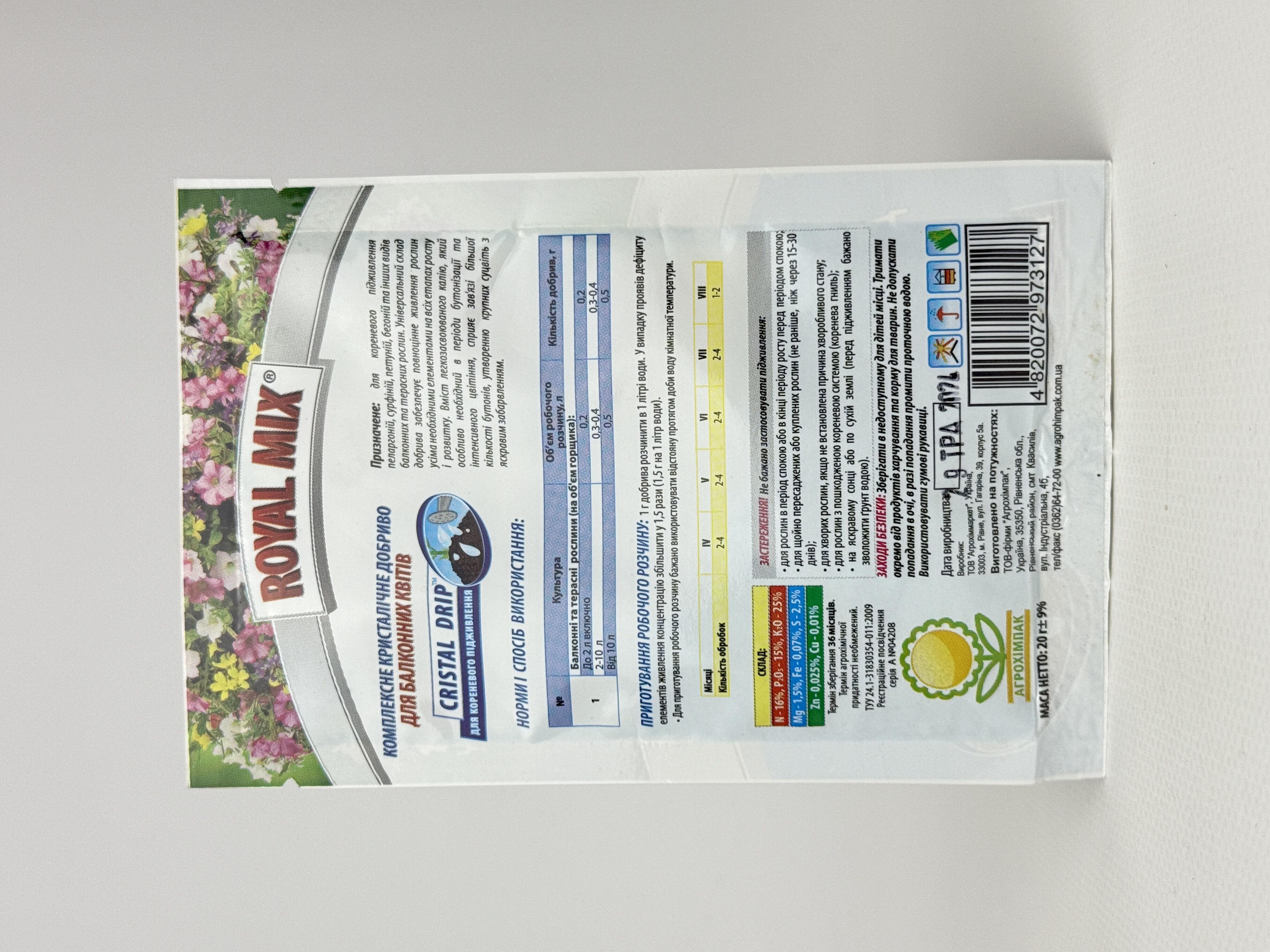 Кристал. добриво ROYAL MIX drip Балконні 20г кількість