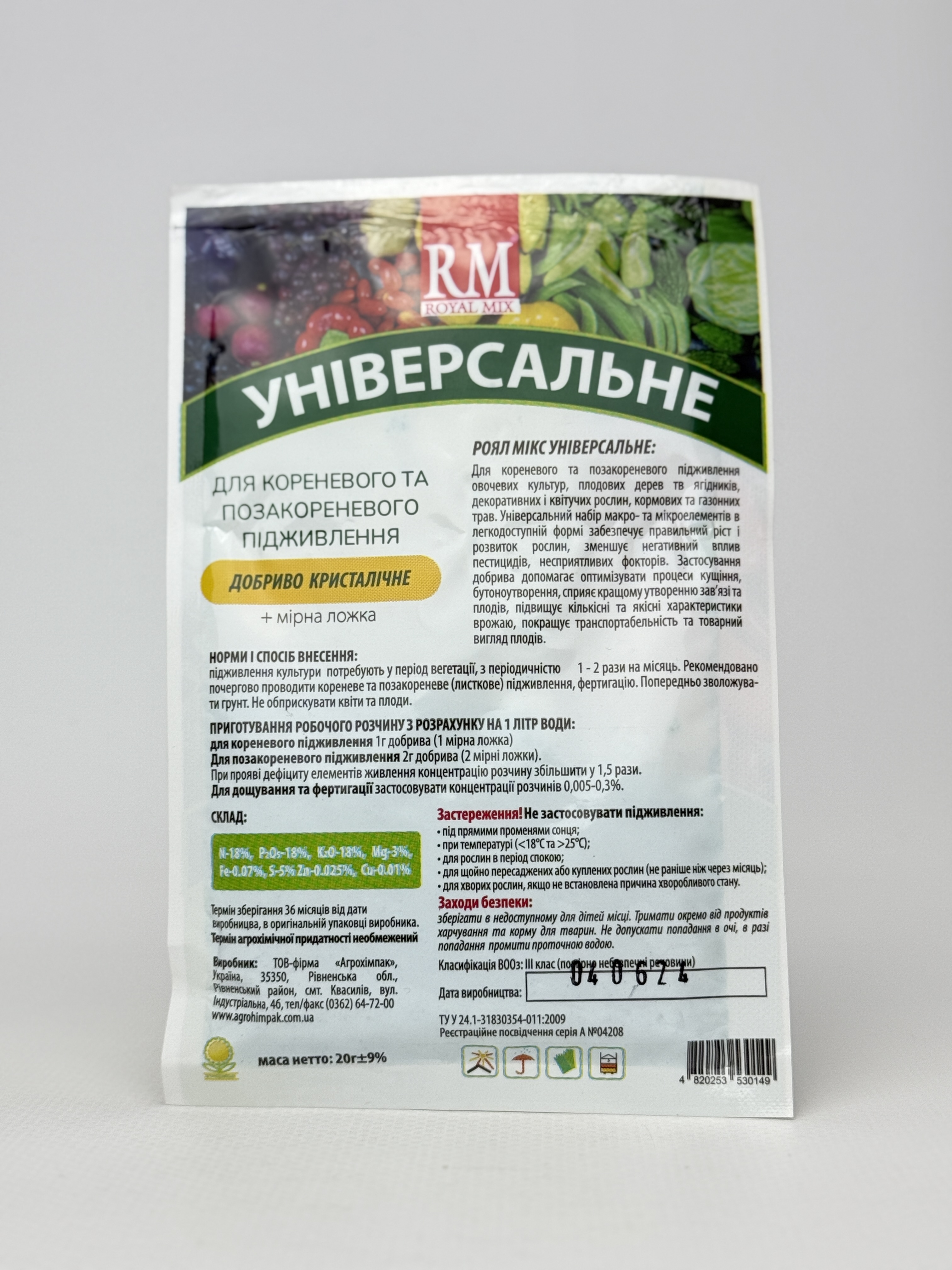 Кристал. добриво ROYAL MIX drip універс. 20г кількість