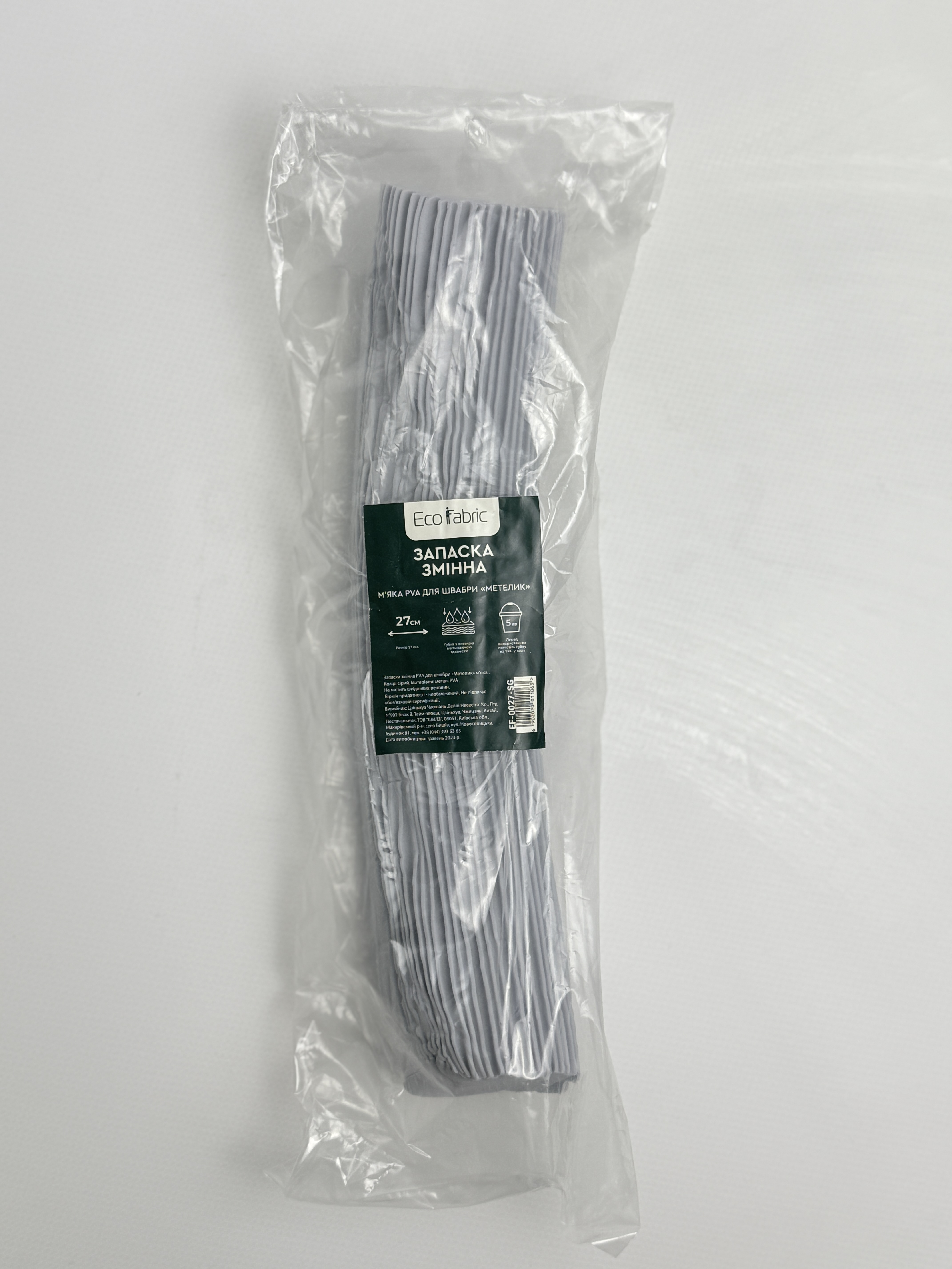 Запаска змінна PVA для швабри “Метелик” м’яка. 27см. сіра