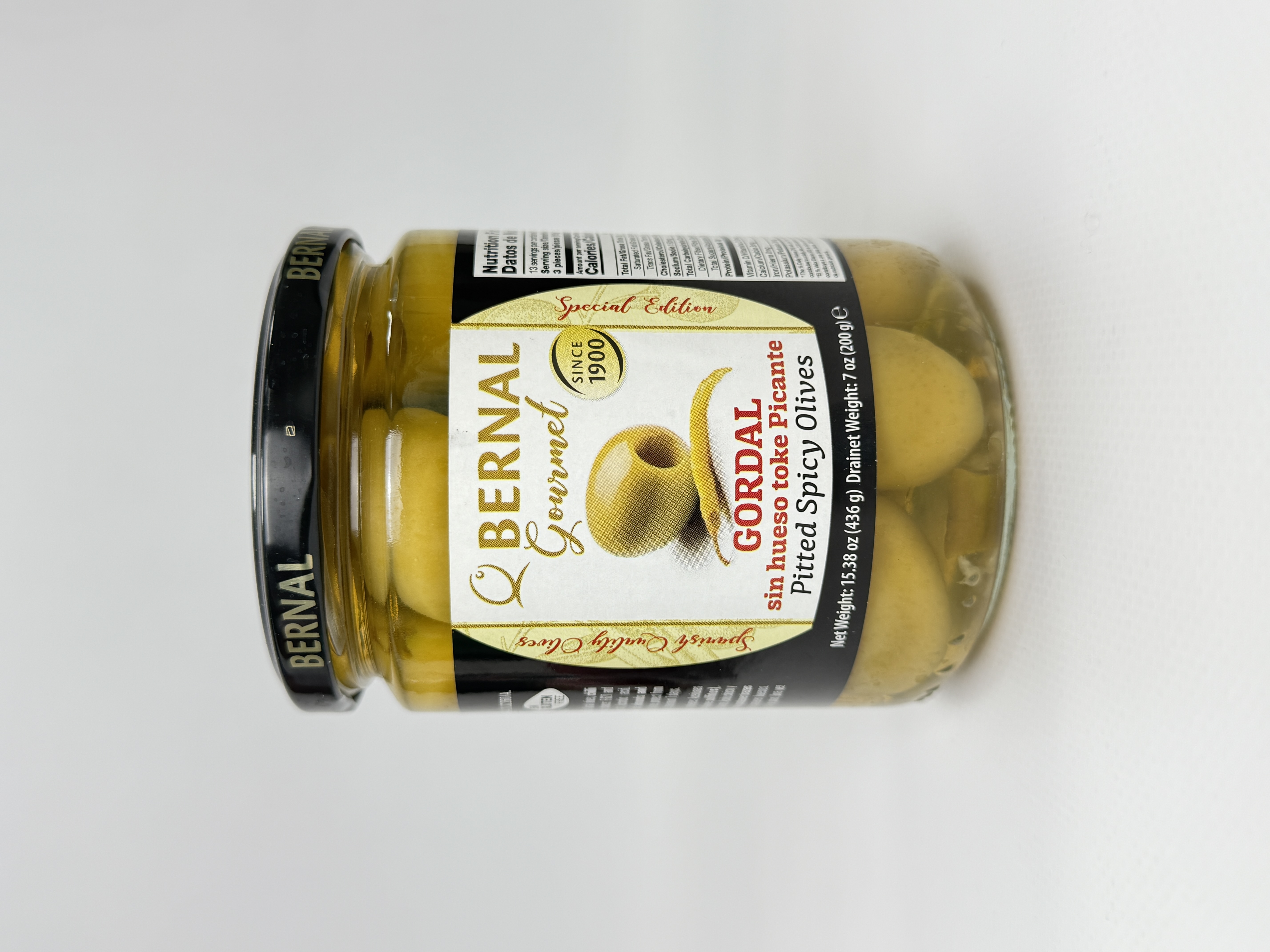 Оливки Bernal Gourmet Гіганти без кісточки пікантні 436 г.(суха вага200 г)