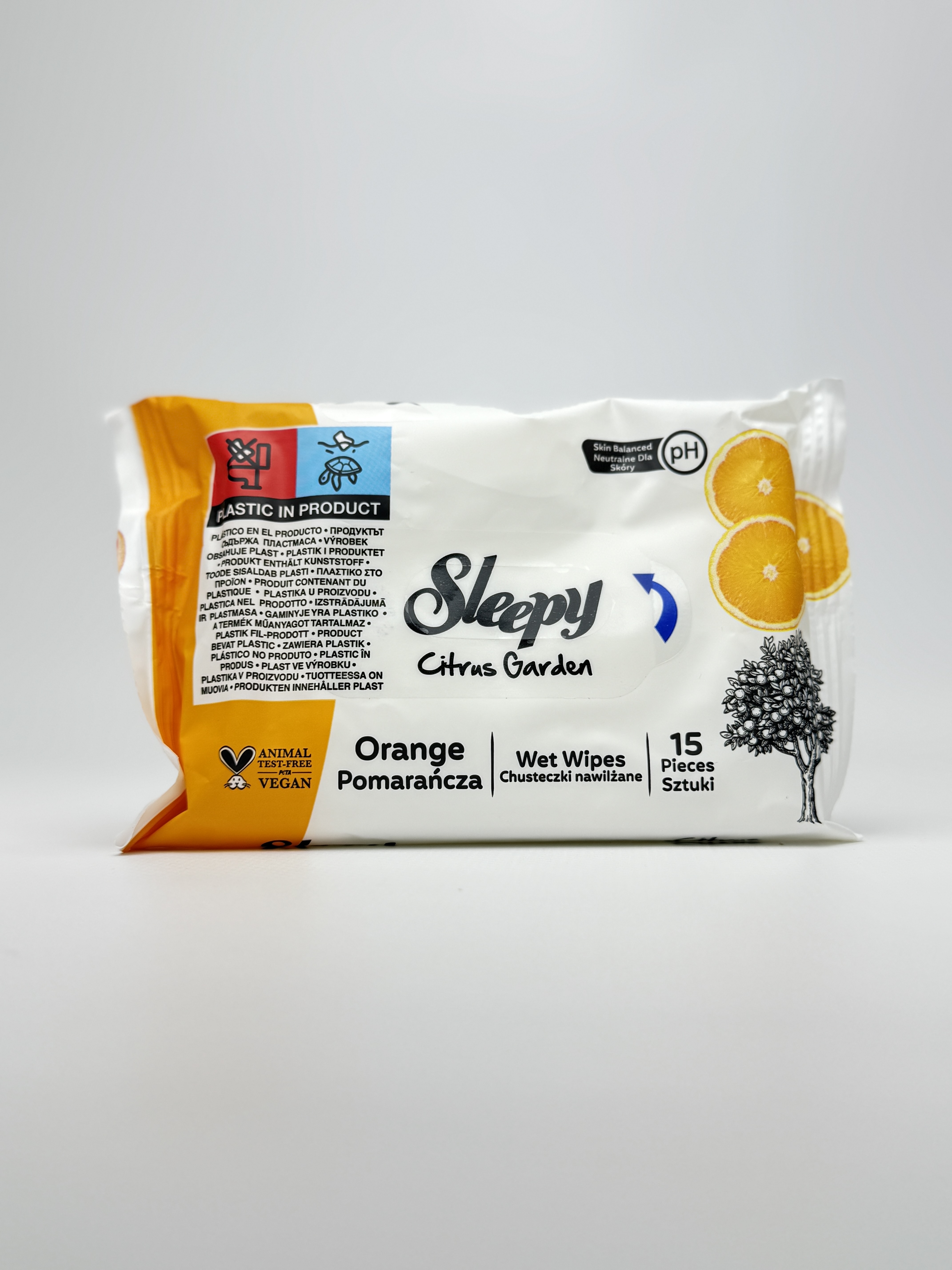 Sleepy Вологі серветки Citrus Garden 15 шт. — це якісні вологі серветки з підбадьорливим ароматом цитрусового саду. Вони забезпечують ефективне очищення шкіри та дарують відчуття свіжості та чистоти на цілий день. М’який нетканий матеріал підходить навіть для чутливої шкіри. Без спирту та парабенів. ці серветки безпечні для частого використання дорослими та дітьми.