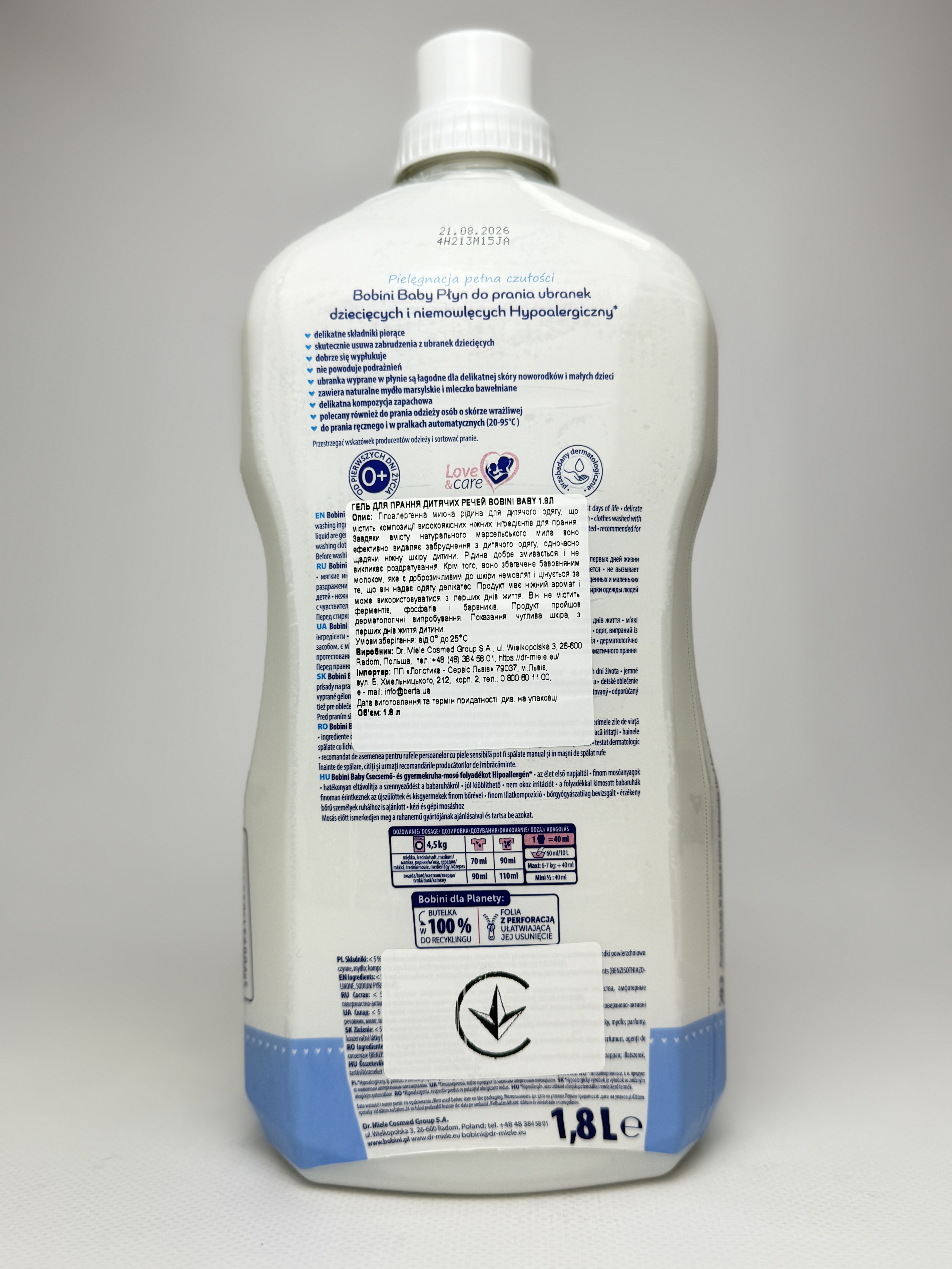 Гель Bobini Baby 1.8л (для дитячих речей) кількість