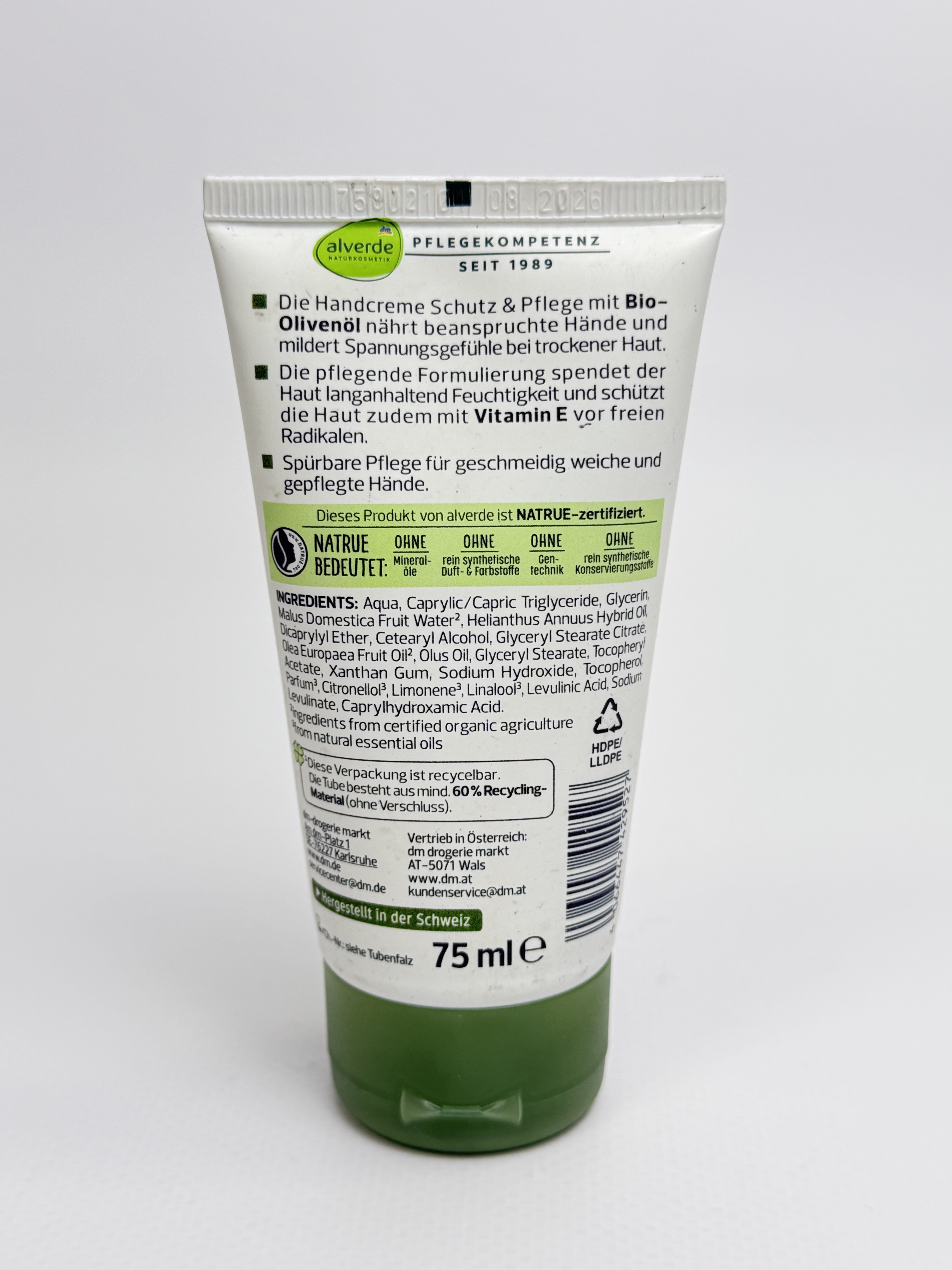 Alverde Крем для рук Schutz & Pflege Olive 75ml кількість