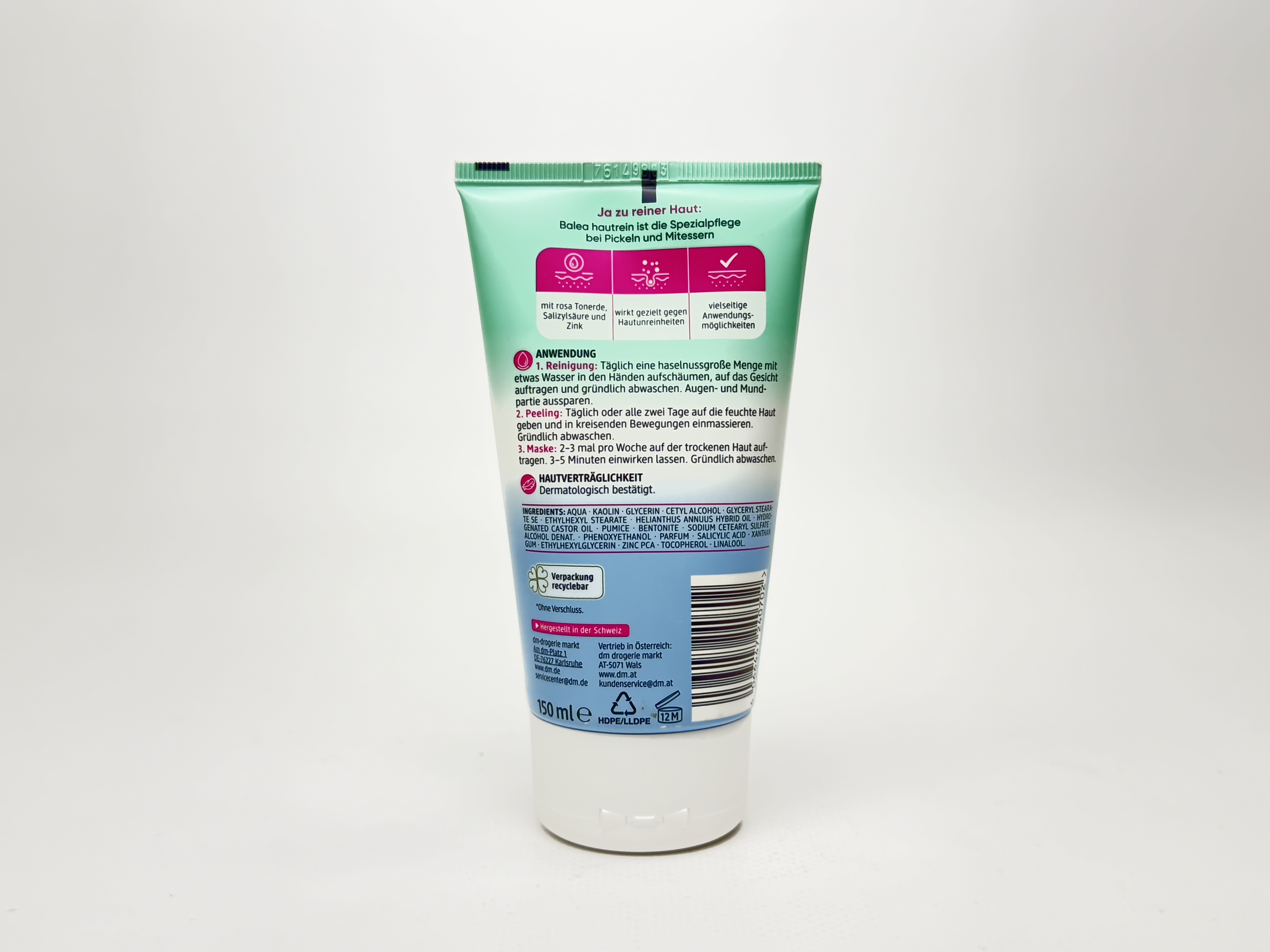 Balea Маска-піллінг Peelingmaske Hautrein 3in1 150ml кількість